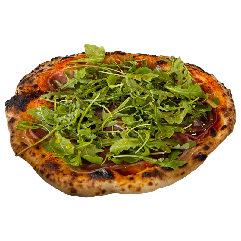 pelati, mozzarella, pršut, rukola, morska sol, parmezan, med